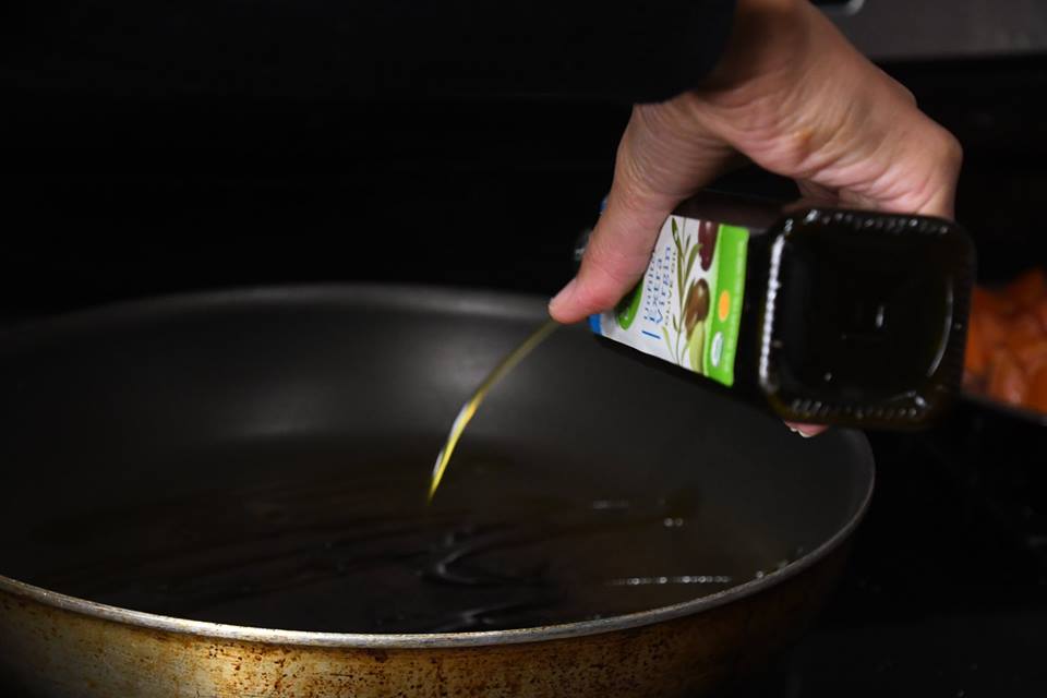 7. Add extra virgin olive oil to the pan until the oil starts to ripple.  The rippling lets you know the oil is hot enough.